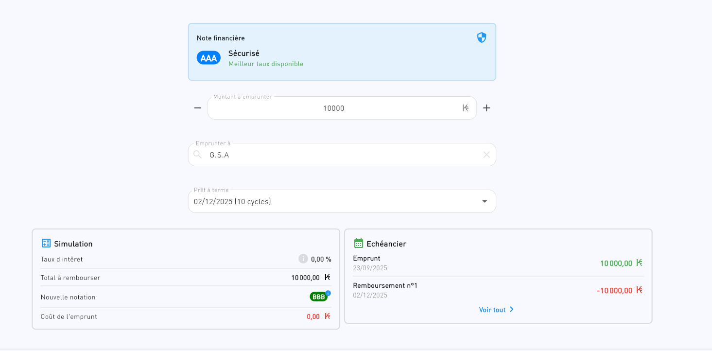 Since the beta release, it is now possible to borrow virtual money on Investycoon.